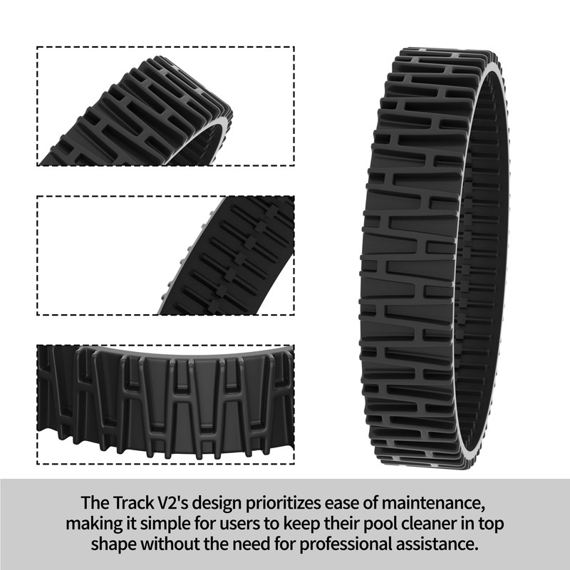 • Improved Mobility: This track helps to ensure the pool cleaner moves efficiently along the pool’s surface. With the V2 design, there’s a smoother, more controlled movement, reducing the chance of the cleaner getting stuck or struggling in corners.