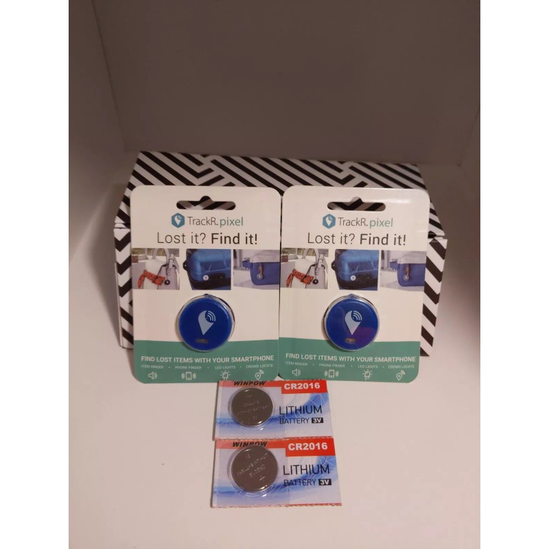 TrackR pixel Set Of 2 With 2 Extra Batteries. 2 blue TrackR pixels comes with 1 battery in package and an extra battery for each TrackR. 4 items in total. All new in package.