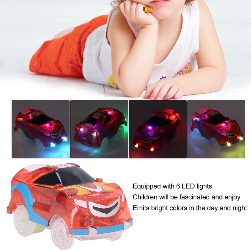 1、EQUIPPED WITH 6 LED LIGHTS: Tracks cars is equipped with 6 LED lights that kids will be attracted to and enjoy. 2、FITS MOST TRACKS: Light up cars is compatible with most racing track sets, including dinosaur toy tracks, rainbow tracks and more. 3、STIMULATE IMAGINATION: RC light up track cars can be played independently on any slippy place to stimulate your child's imagination. 4、THOUGHTFUL TIPS: Light up toy cars are best not to hit hard objects or hit wall during long term use, and not to fall from high places. 5、LIGHTWEIGHT DESIGN: Music light up cars are made of premium lightweight ABS materials. Emits bright colors in the day and night.