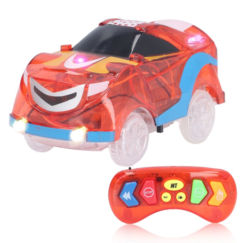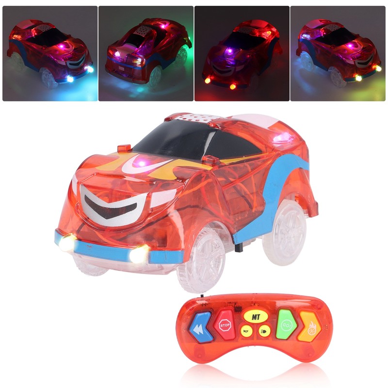Tracks Cars 6 LED Lights Remote Control Light Up Track Cars with Music for Children Red