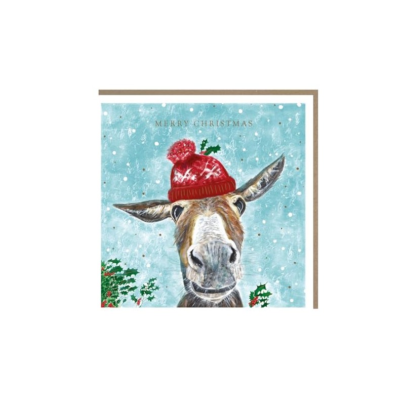 - CHARITY CHRISTMAS CARDS: This pack of Christmas cards features a wonderfully illustrated design of a donkey in the snow wearing a cosy hat, and is perfect for sending heartfelt festive wishes to special friends, family and neighbours. Proceeds from all purchases go towards supporting The Marie Curie Charity.