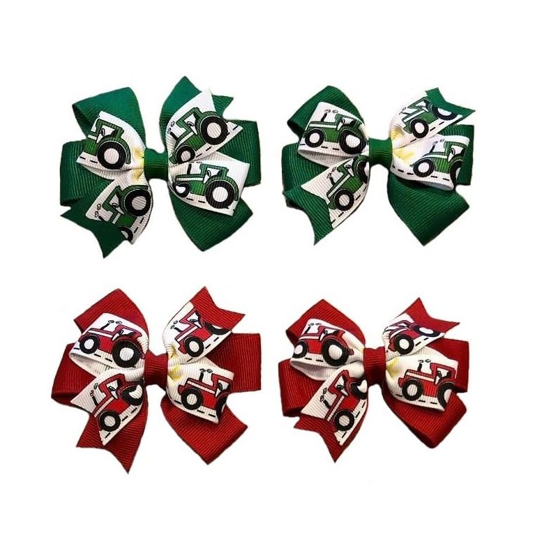 Tractor Toddler Hair Bow Set (Red or Green)