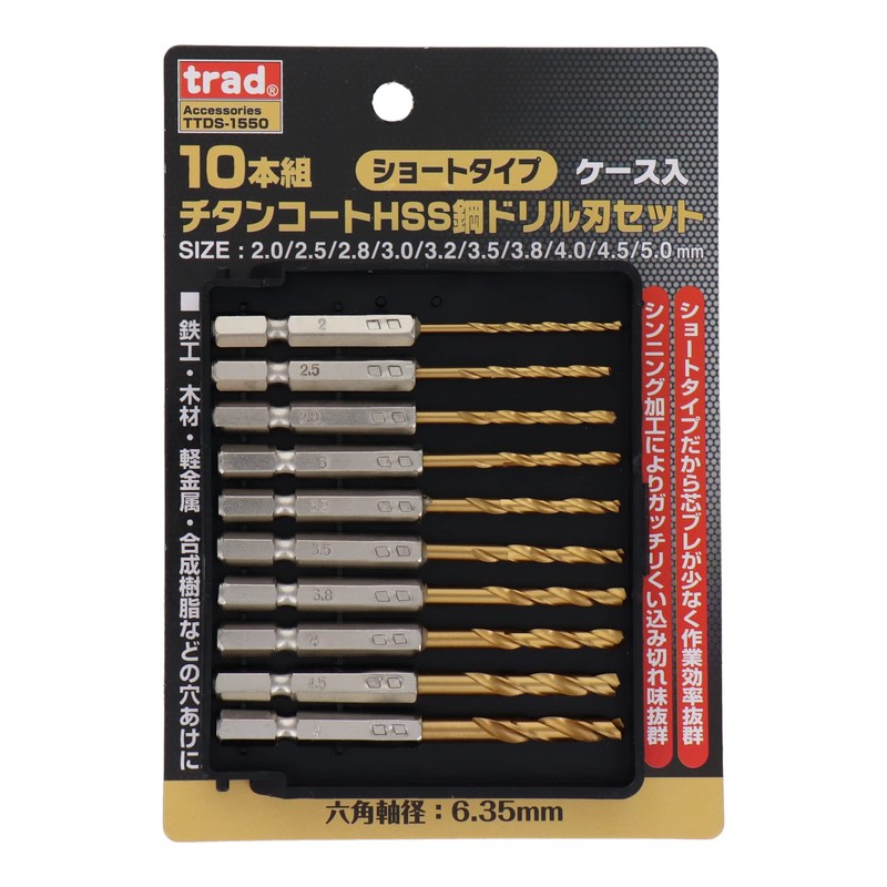 Trad 10 Piece Titanium-Coated HSS Steel Drill Blade Set Ttds – 1550
