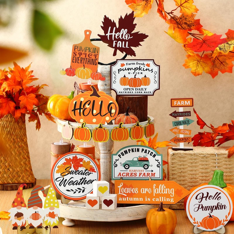 - Versatile Decorative Applications: in addition to be regarded as tier tray decor, our thanksgiving decor can be displayed on dining tables, fireplaces, cabinets, shelves to create fall touch for the indoor space