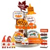 Tradder 19 Pcs Thanksgiving Tiered Tray Decorations Set Hello Fall Rustic Farmhouse Tray Decoration Fall Pumpkin Maple Leaf Gnome Wooden Sign Thanksgiving Tabletop Sign for Fall Home Kitchen