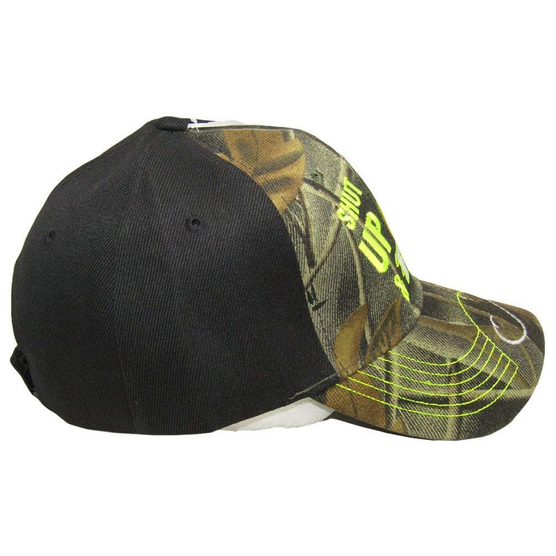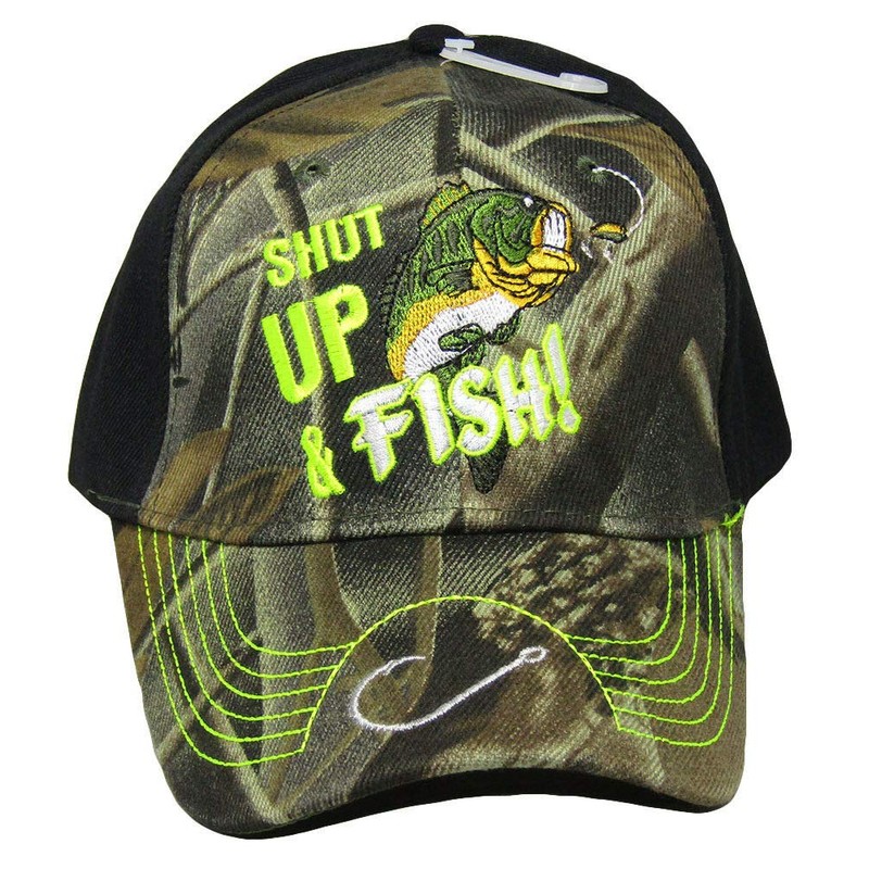 Trade Winds Shut Up and Fish Fishing Hook on Bill Black Camo Embroidered Cap CAP940 Hat
