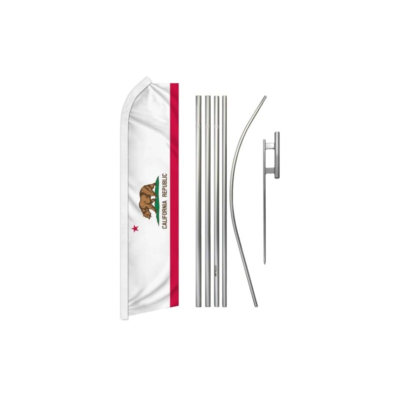 Trade Winds State of California Super Swooper Flag & Flag Pole Kit & Ground Spike, 11.5' x 2.5'