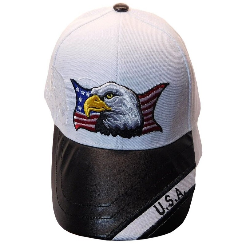 Trade Winds USA Wavy Flag Bald Eagle American White Adjustable Embroidered Cap Hat
