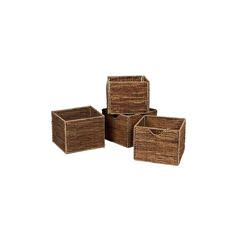 Trademark Innovations 12.7" Foldable Seagrass and Banana Leaf Storage Basket with Iron Wire Frame (Set of 4)