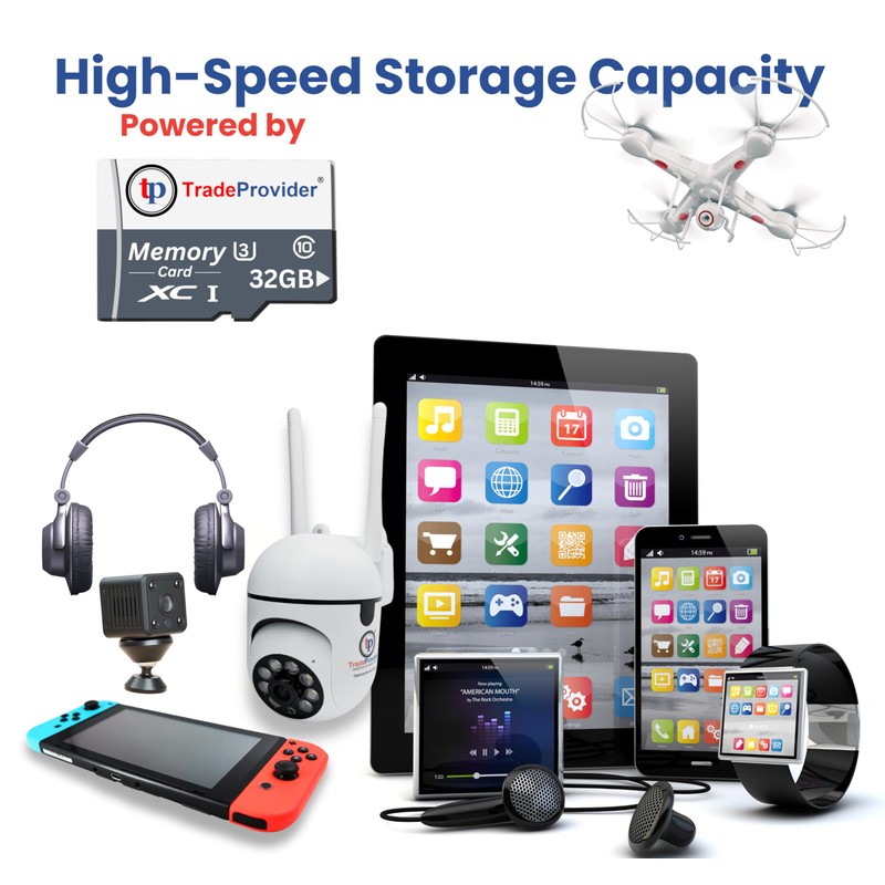 TradeProvider's 64GB Ultra Memory TF Card offers lightning-fast read speeds of up to 140MB/s, making it ideal for seamless 4K video recording, smooth gaming, and rapid file transfers.