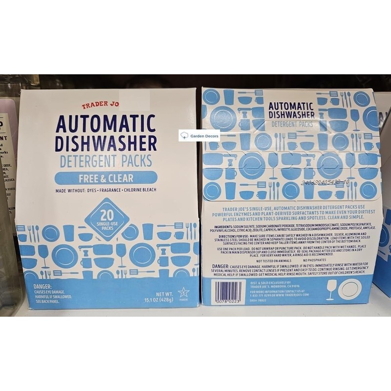 Trader Joe Automatic Dishwasher Detergent Packs Free & Clear (Two Packs)