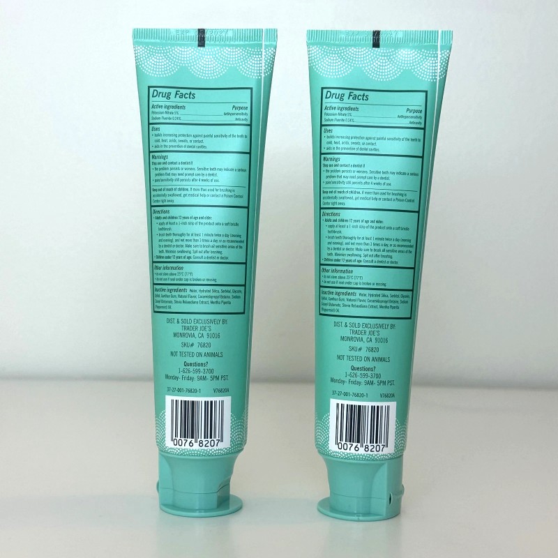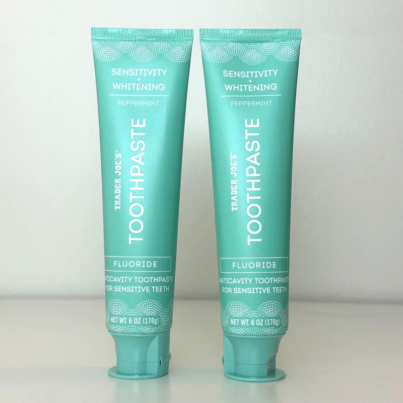 As its name indicates, this Toothpaste is formulated specifically with Sensitivity relief and Whitening in mind. Potassium nitrate helps calms the nerves inside your teeth to reduce discomfort, while hydrated silica (a gentle abrasive that removes surface stains) and xylitol (an anti-cavity and plaque-reducing agent) work to remove surface stains and brighten your smile. It also contains sodium fluoride, which works to strengthen enamal and prevent decay. So, while it might be bittersweet to squeeze out the last bit of Trader Joe’s Peppermint Sensitivity & Whitening Toothpaste, you can smile knowing it’s been a refreshing companion in your daily routine... and an incredible value on your shopping list.