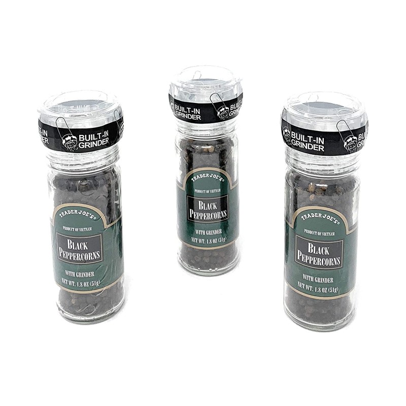 Trader Joe's Black Peppercorns Pepper with Grinder -- 3-PACK -- 1.8 Ounces each