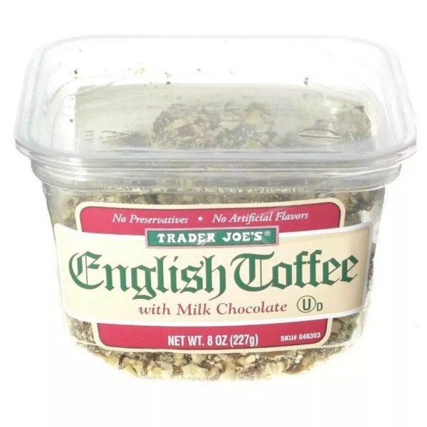 TRADER JOE'S ENGLISH TOFFEE WITH MILK CHOCOLATE, NET 8 OZ "KOSHER"