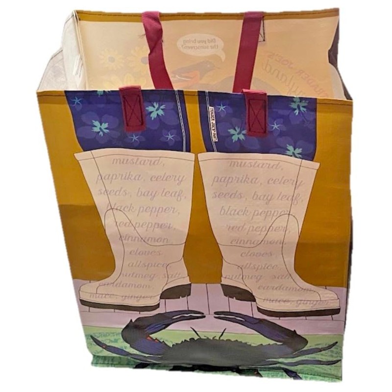 Trader Joe's Maryland Reusable Grocery Shopping Bag; State Themed Design: Blue Crab, Cheseapeake Watermen, Assateague Wild Horse...