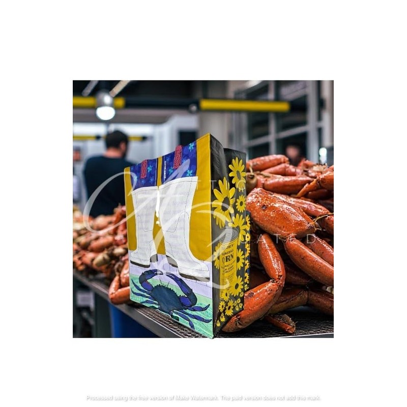 - MARYLAND THEMED DESIGN: Beautiful reusable shopping bag featuring iconic Maryland imagery including blue crabs, Assateague wild horses, state flag, and decorative sunflowers