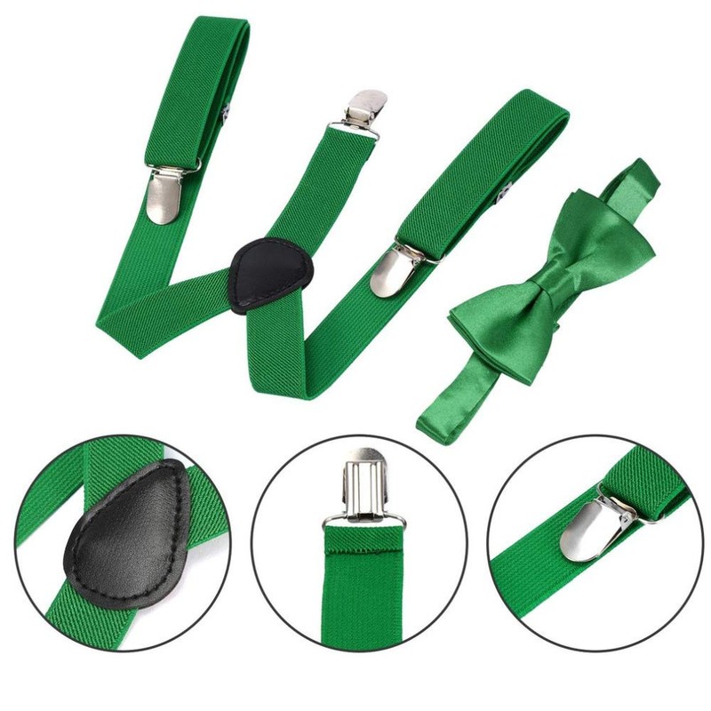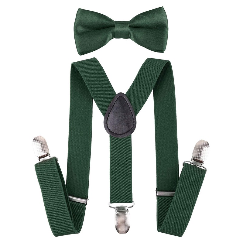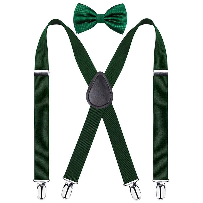traderplus Men Elastic Suspenders and Bow Ties Set for Wedding, Formal Events (Green)