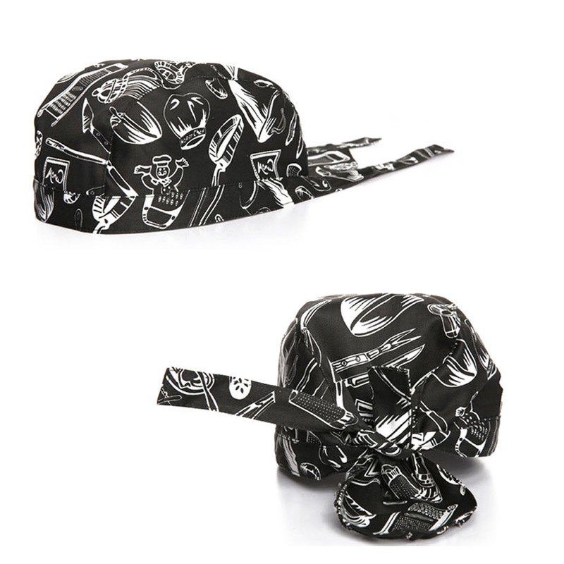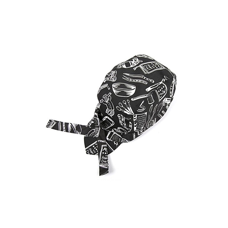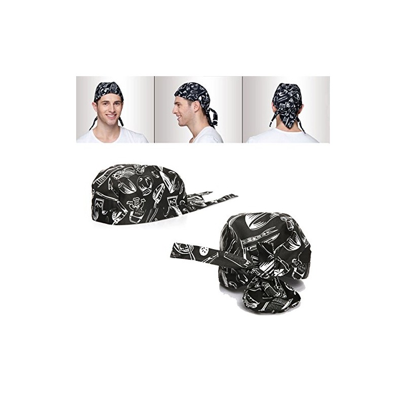 TRADERPLUS Men Women Chefs Hat Baker Skull Cap Kitchen Cooking Ribbon Turban