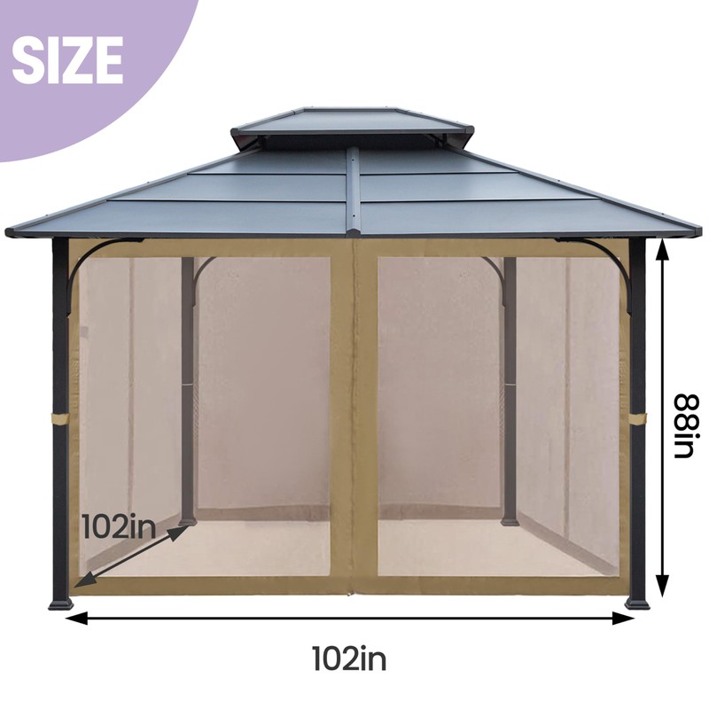 Tradesparker 8x8 Gazebo Replacement Mesh Walls,4-Sided Mosquito Screen Netting with 42Curtain Rings & 42Rail Hooks,Khaki (Universal Fit for Gazebo & Pergola)