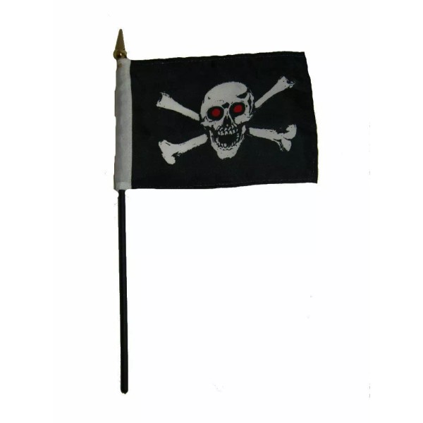 TRADEWINDS Jolly Roger Pirate Red Eyes Flag 4"x6" Desk Table Stick