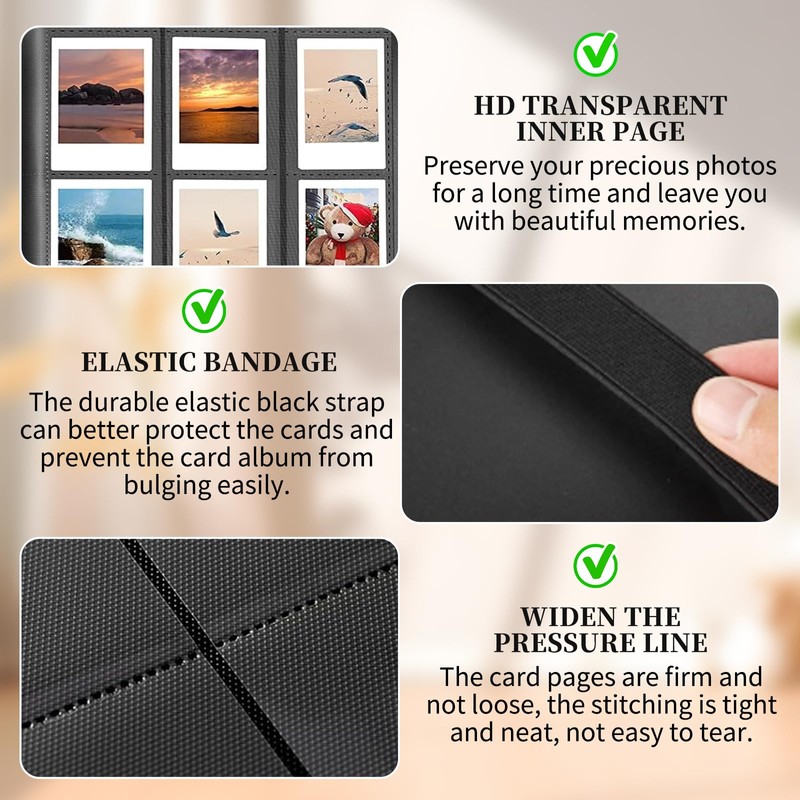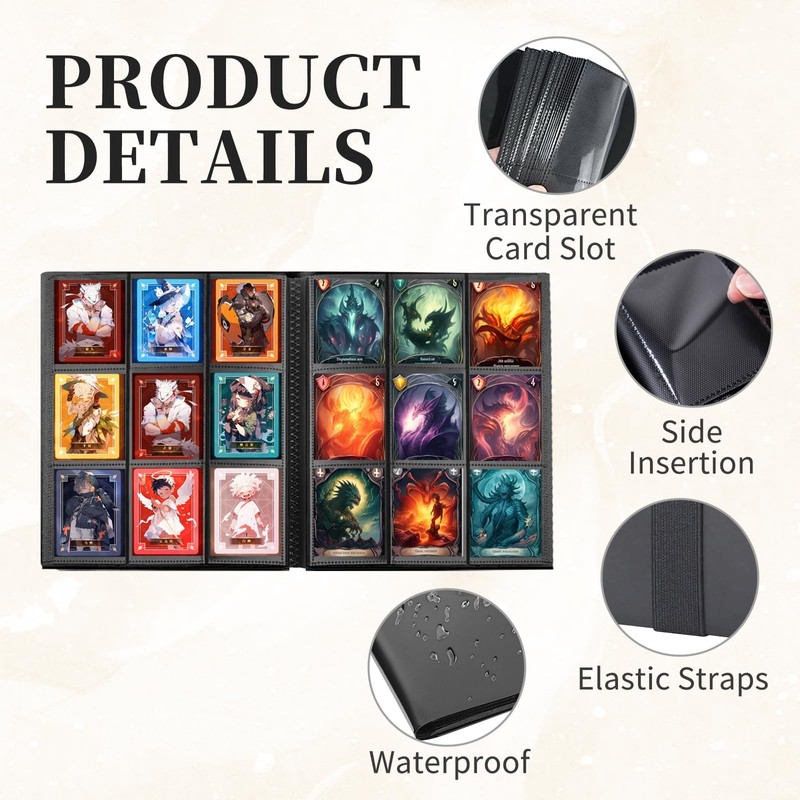 - Elastic band design: the trading card folder is also equipped with an elastic band. After inserting a large number of cards, the elastic band can be reattached to prevent the trading card album from opening and the cards falling out.