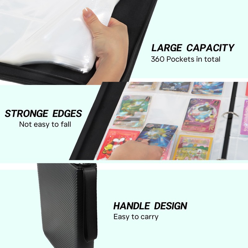 Trading Card Album with 9 Compartments, 360 Compartments, Card Folder, Card Binder, Album with Slot Slot, Trading Card Album Folder - Board, Trading and Trading Card Games (Black)