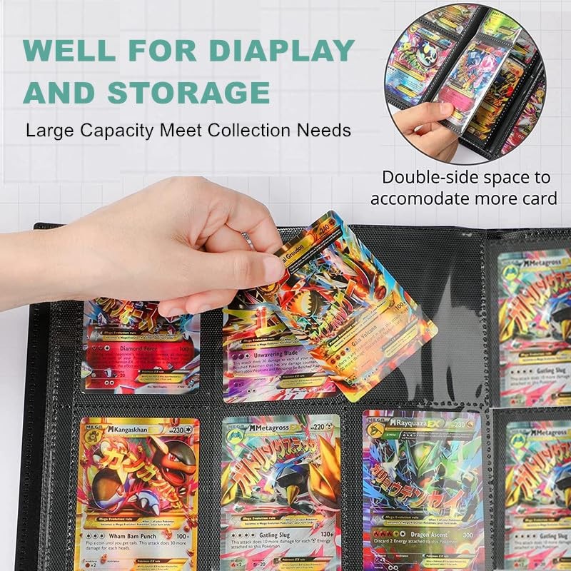 - 【Large Capacity】: Stores 1024 trading cards to meet your collection hobby, and keep your trading cards in good condition and organized. See through every detail and artwork, no need to take cards out of the pocket sheets, it is the ideal binder.