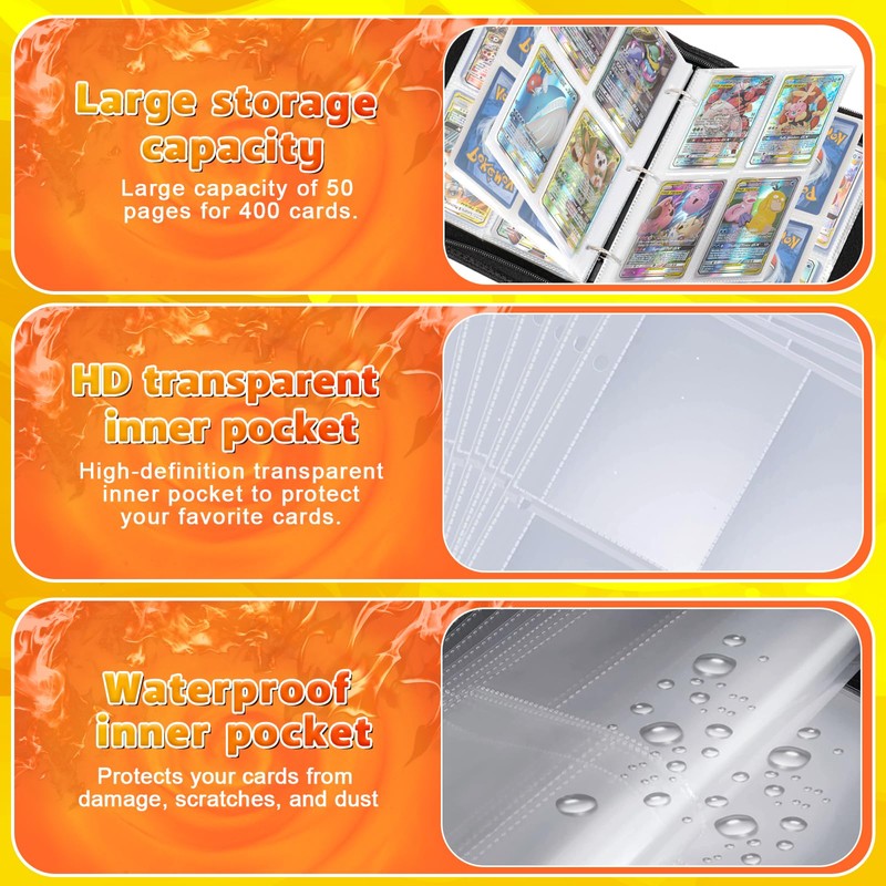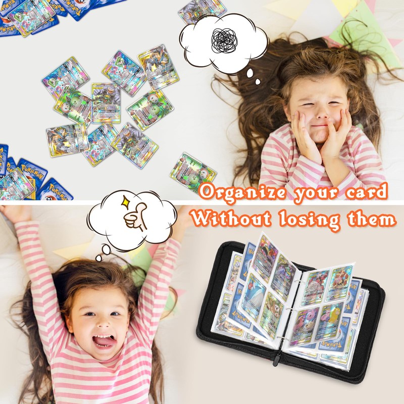 - 【Large Storage Card Binder Capacity】card book storage capacity,Includes 50 high-quality removable sleeves,Holds a total of 400 transaction cards and cards can be stored on both sides,With 4 pockets per page, there's no need to worry about lost cards,The Trading Card Album gives you plenty of space to organize your cards.