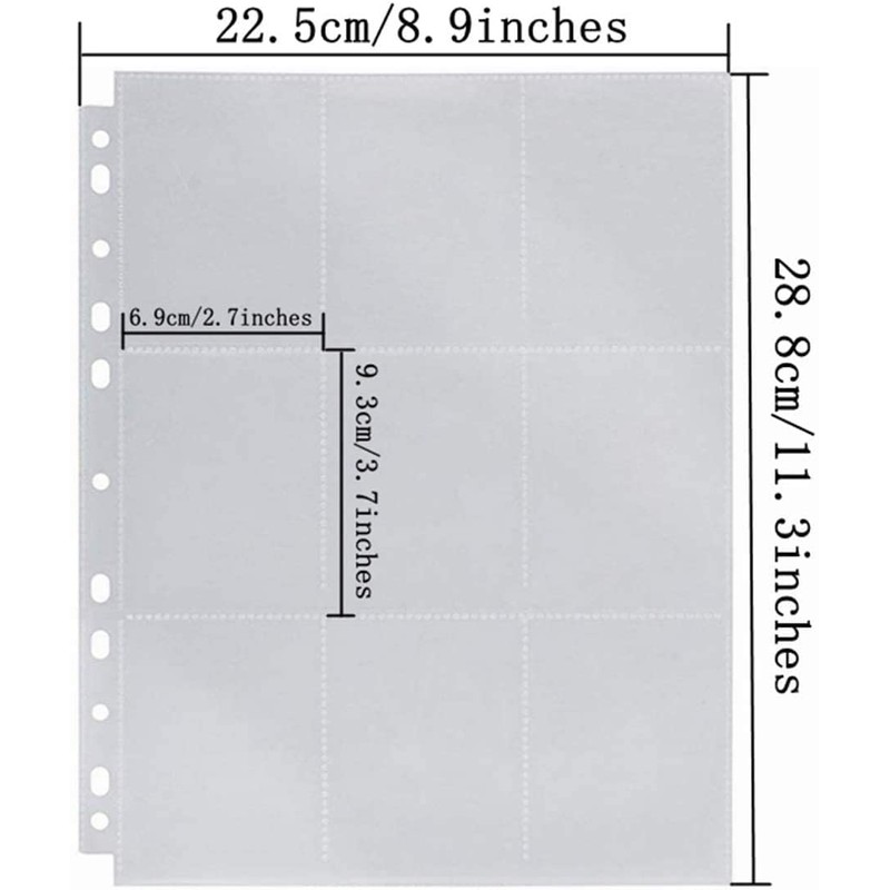• Double-sided Storage: 9 pockets per side, 18 pockets per page, total 540 pockets of 30 pages. pre-punched for handy storage in any three ring binder