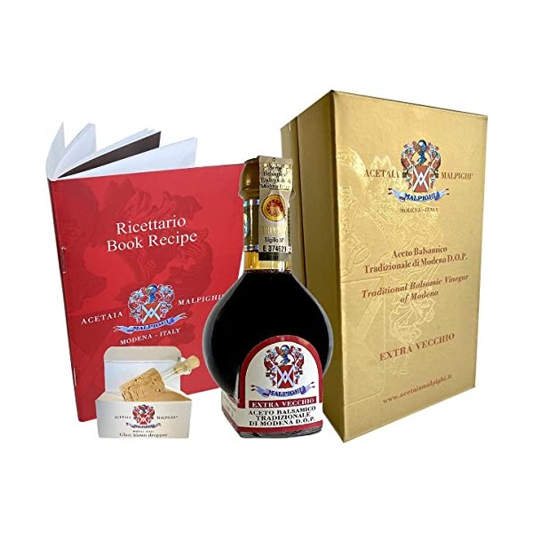 Traditional Balsamic Vinegar of Modena 25 years old, Pdo (Malpighi) 3.4 oz + Tic doser + Recipes book
