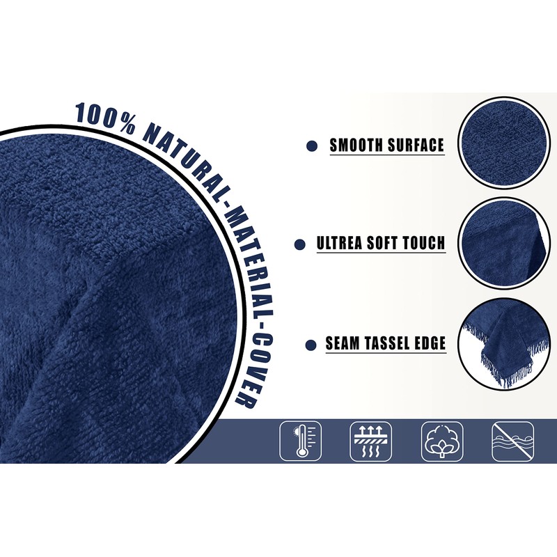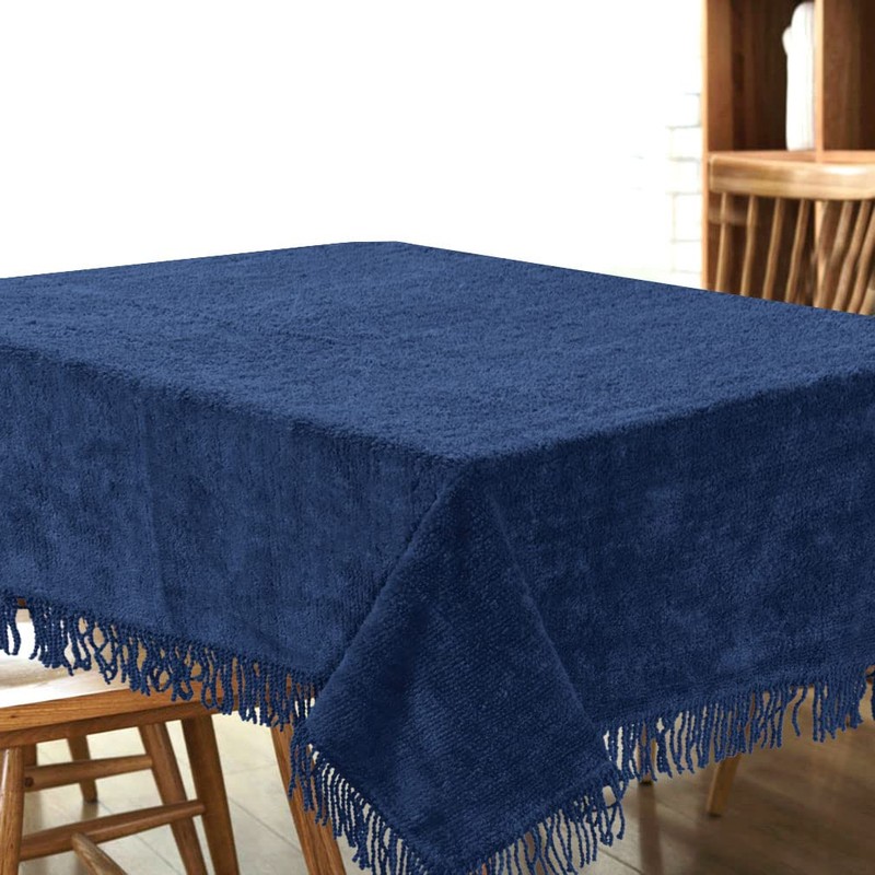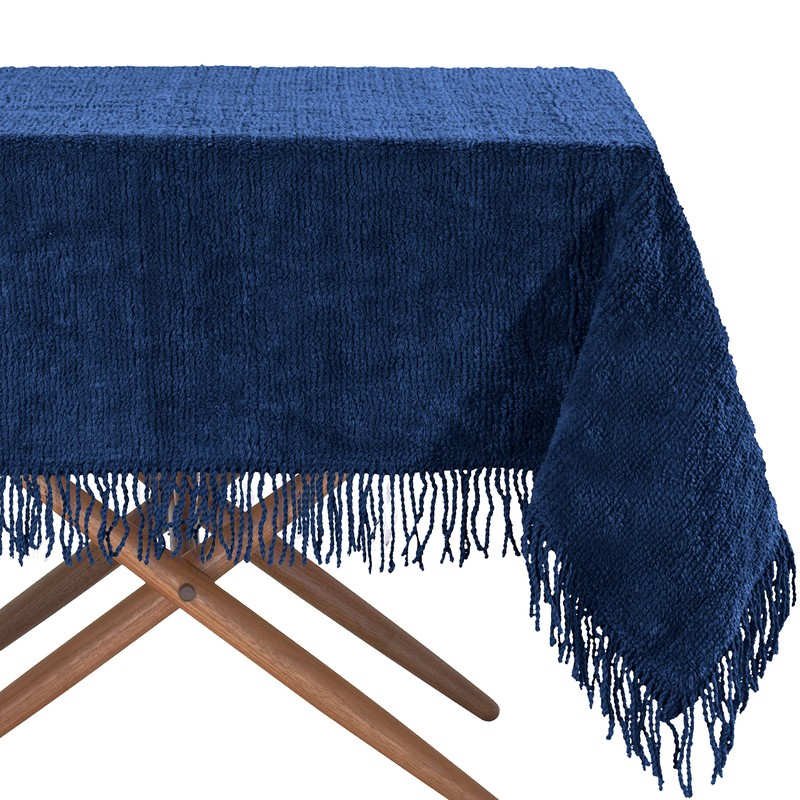Traditional Large Cotton Chenille Table Covers Tablecloth Non Iron Dining Party Kitchen Durable Material Tablecloths with Fringe Kitchen Dinning Tabletop Decoration (137cm x 137cm Square, Navy)