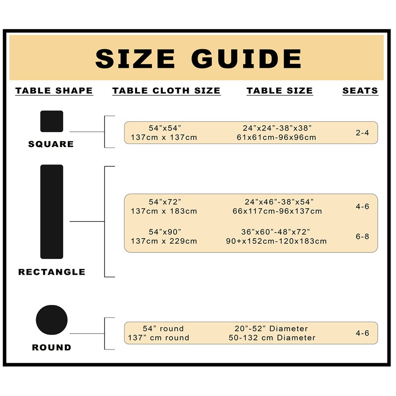 - Choose from 4 different sizes 137cm Round, 37cm x 137cm Square.,137cm x 183cm Rectangle,137cm x 229cm Rectangular large