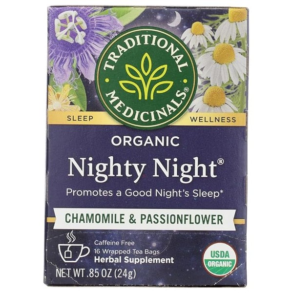 Traditional Medicinals Organic Nighty Night with Passionflower Herbal Tea, Promotes a Good Night’s Sleep, (Pack of 1) - 16 Tea Bags
