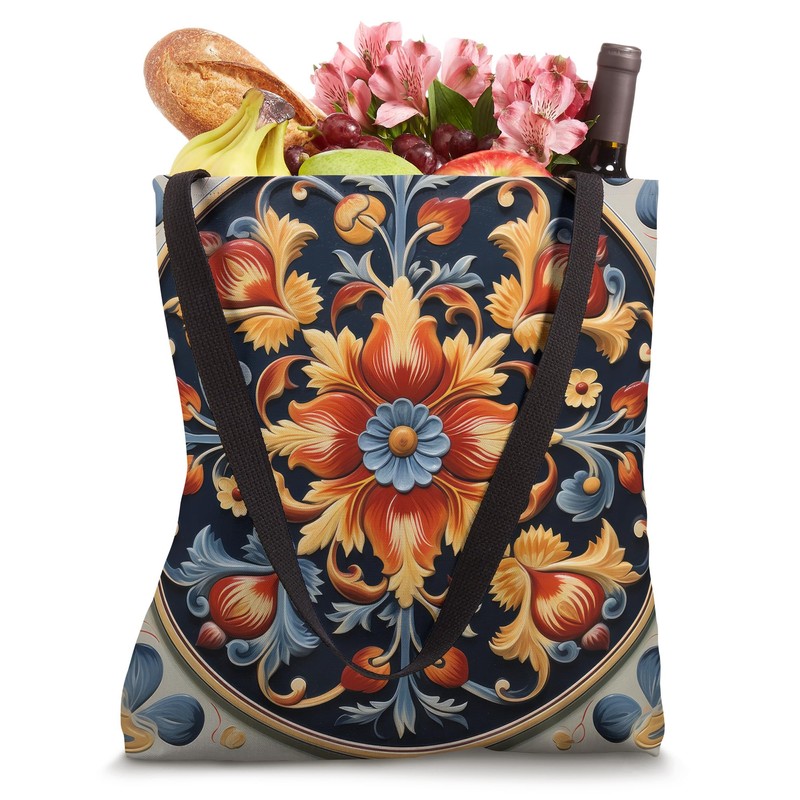 Traditional Norwegian Rosemaling Folk Art Tote Bag