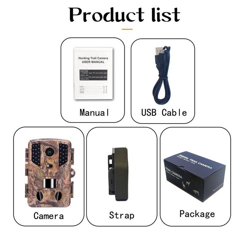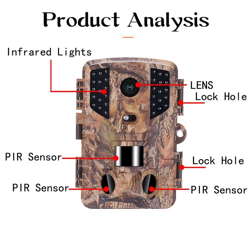 1、1. Lightning 0.2S trigger speed: Equipped with a motion detection sensor, the tracking camera will trigger within 0.2s, even for fast-moving wild animals exposed to the wild, it can capture clear and vivid photos/videos. 2、2. 3 PIR and HD night vision: This camera integrates 3 passive infrared sensors to provide you with excellent sensitivity and a wide detection range of 120°, ensuring that the photo/video has a target under the spotlight. 850nm infrared technology can provide ultra-clear and detailed night vision. 3、3. 20MP image and 1080P video: With high-quality 20MP and 1080P resolution, it can present incredibly vivid images and clear audible videos. Combined with automatic day and night sensors, you can observe and taste the original ecological world of wild animals up close. 4、4. Excellent waterproof and durable performance: This sturdy camera adopts an IP65 waterproof rating, which is rainproof, dustproof and anti-fog. It will work in harsh environments such as deserts or tropical rain forests. Powered by 8 AA batteries (not included), the power consumption is extremely low, and the standby time is up to 10 months. 5、5. More discoveries: This tracking camera has 3 shooting modes, continuous shooting and time-lapse photography. Easy to operate and install.