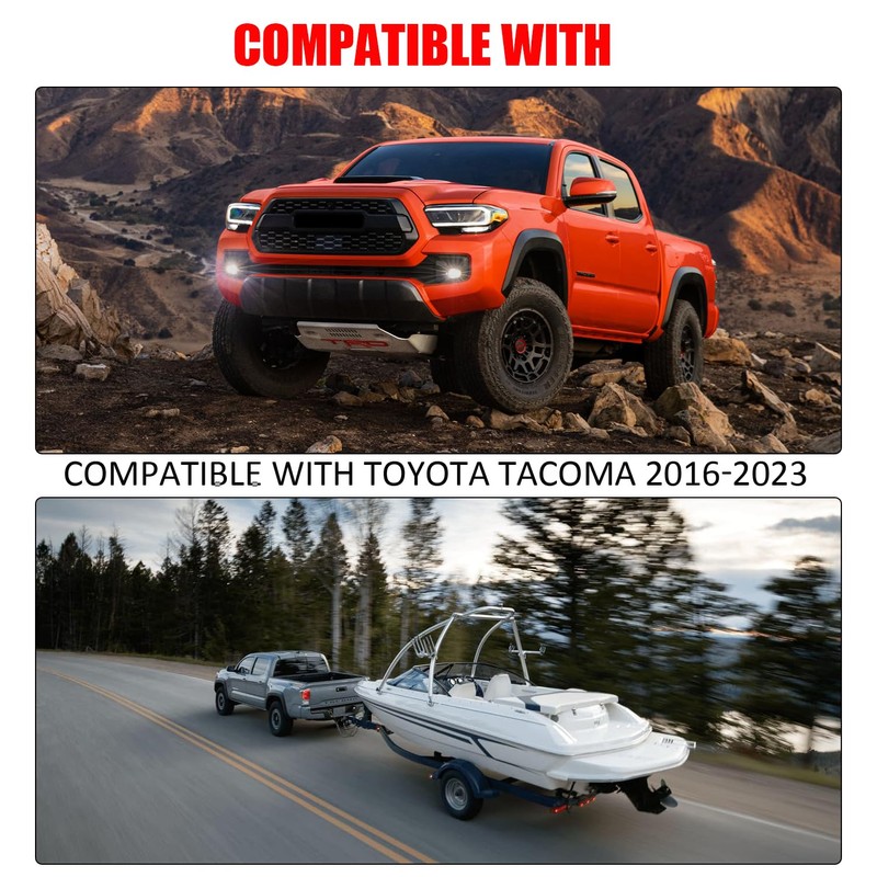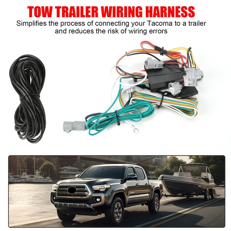 • Custom Fit: 4 pin trailer wiring harness compatible with Toyota Tacoma (SR/SR5/TRD PreRunner/TRD Sport/TRD Off-Road/Limited/Trailhunter/TRD Pro) 2016 2017 2018 2019 2020 2021 2022 2023 2024.