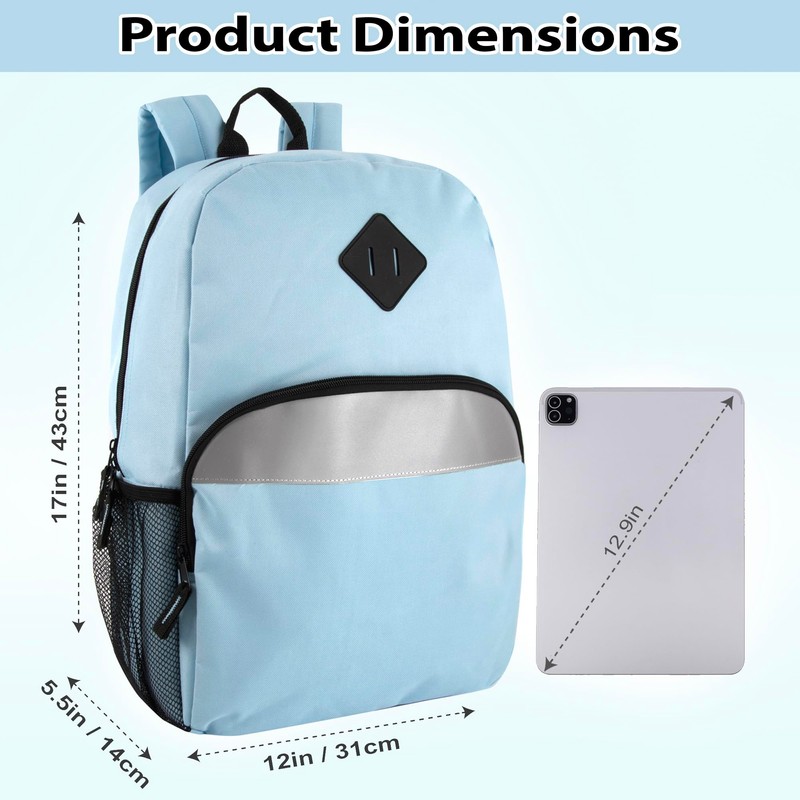 Trailmaker Reflective School Backpack for Kids | Colorful Backpack with Adjustable Straps, Side Water Bottle Pockets (Blue)