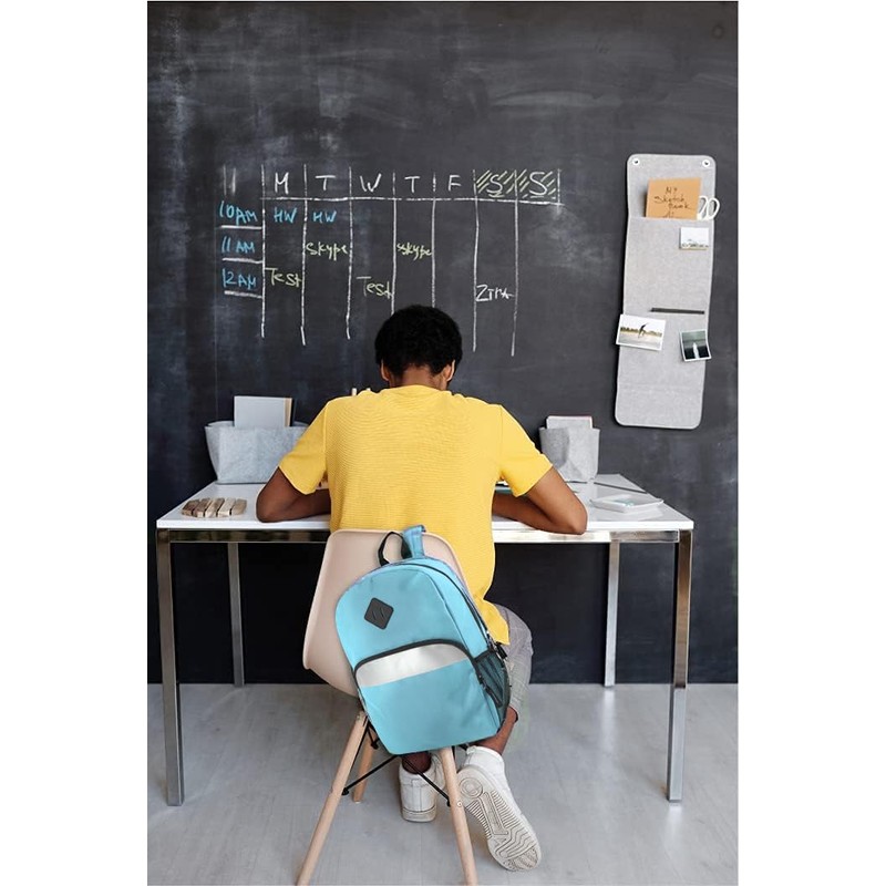 - DIMENSIONS & DETAILS: Book bag measures 17” H x 12” W x 5.5” D, & is made of durable, smooth polyester. Hang handle double stitched on top so you can easily store this modern, 20 litre backpack