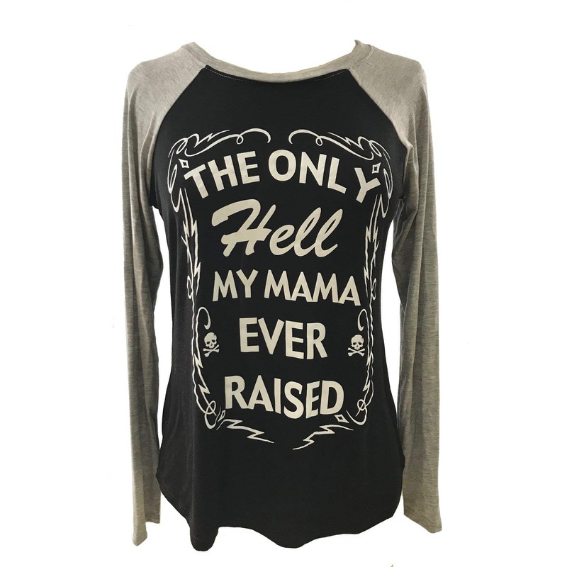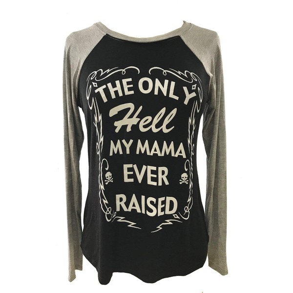 TRAILS Only Hell My Mama Ever Raised Long Sleeve Raglan …(Black/Grey, 2X)