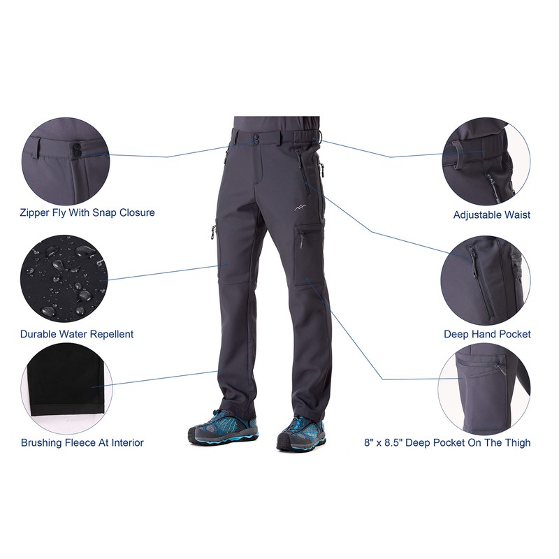 TRAILSIDE SUPPLY CO. Men's Fleece Lined Insulated Pants Softshell Pants,Water and Wind-Resistant Black Size 3X-Large
