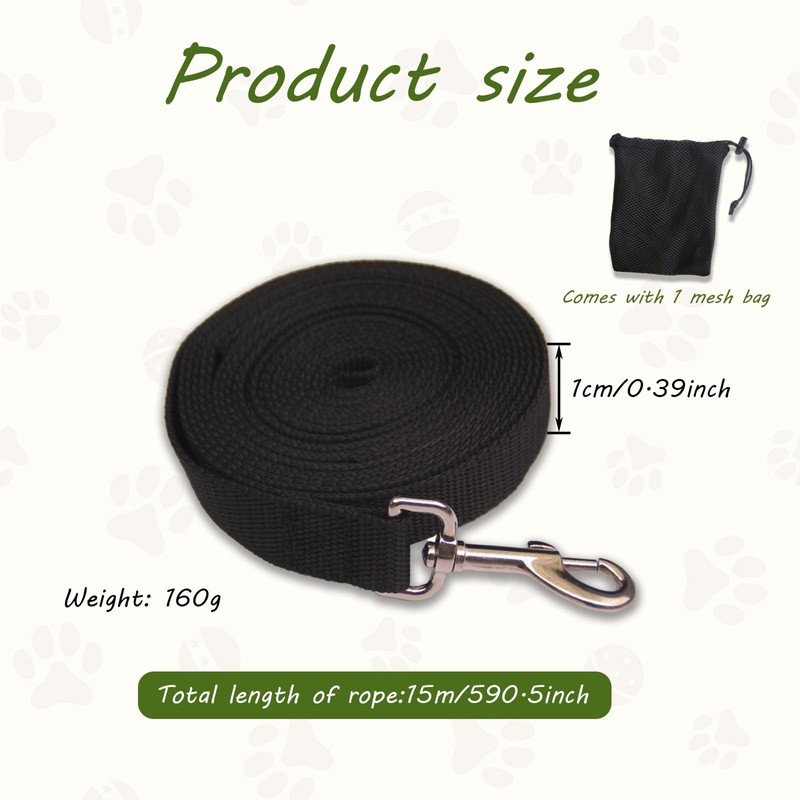 - Extra long dog rope - The dog training rope has a 15 m long rope and a width of 1cm, which can give the dog more freedom without worrying about getting lost