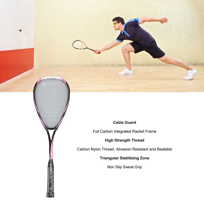 1、Transparent Racket String: This student squash racket features a transparent racket string that is sturdy and durable, with just the right amount of tension that won't be easily lost, allowing you to drop and bounce nicely. 2、Oversized Surface: This beginner squash racket features an oversized surface so you can hit more accurately and enjoy a larger optimal hitting position. 3、Lightweight And Comfortable: Each carbon squash racket weighs only 350g, so you won't feel fatigued even after long hours of use, allowing you to perform well on the court. 4、Foam And Rubber Wrapped Handle: The handle of this squash racket is wrapped in foam and rubber material, which is soft and shock absorbing and reduces the vibration of the racket to protect your hands from injuries. 5、Wide Application: This lightweight squash racket has a wide range of applications and can be used on the court, at home, in parks, at the beach and in schools, etc.