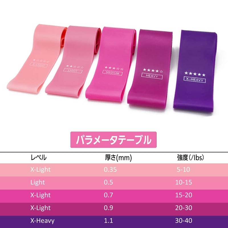 - 【5 COLOR SET OF STRENGTH LEVELS】5 color exercise bands have different strength levels. You can freely train and increase your strength depending on your body position and physical condition