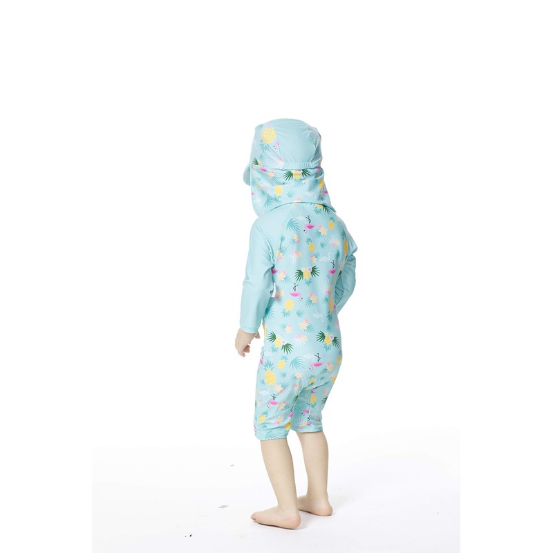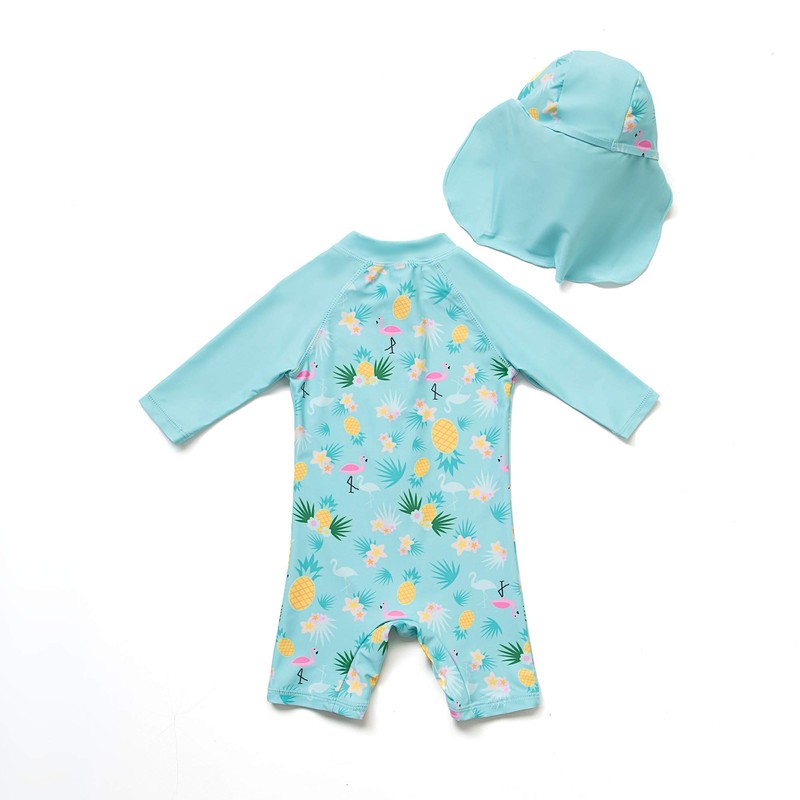 Trajes de sol para niñas con protección solar UPF 50+, mangas 3/4 de una pieza con gorro para el sol, Pineapple, 9-12 meses