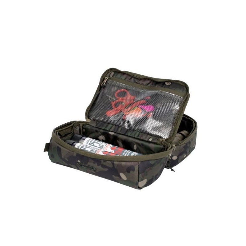 - Removable zipped storage pouch can be secured in upper or lower compartments, ideal for leads, pre-tied mesh or solid bags
