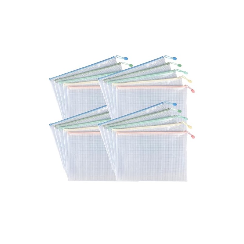 Tramboo 20 Pcs Mesh Zipper Pouch Bags, A4 Letter Size Document Pouches, Waterproof Zipper Bag, File Storage for Classroom, Office Supplies and Home Organization