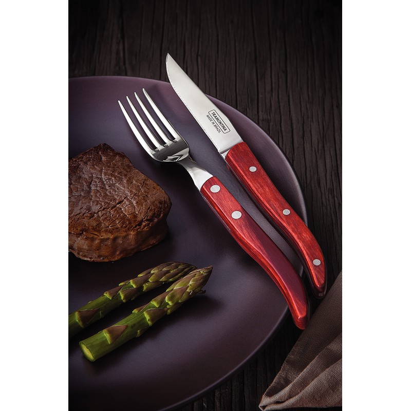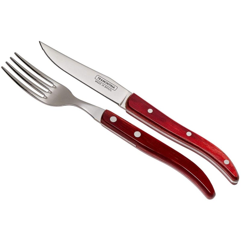 Tramontina Churrasco Paisano Steak Cutlery Set, Red Stainless Steel/Pine