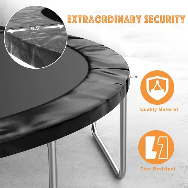 - Thick and Solid - The trampoline spring cover is made of three layers of high-quality materials. PVC on the top, 0.43'' thick EPE foam inside, and PE on the bottom, ensuring your and your children's safety at all times.