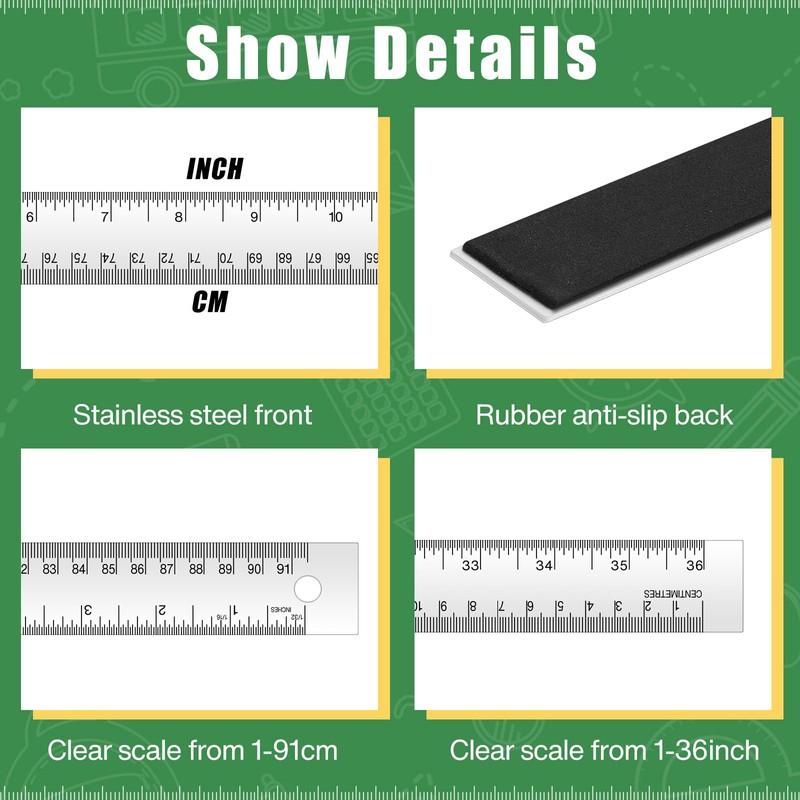 - Widely Application: this office ruler with non slip rubber backing suitable for multi applications, such as home, school, drawing tools, wood measurement, etc. It is also very suitable for students, teachers, and professionals, as well as artists, architects, designers, engineers, carpenters, DIY enthusiasts, and anyone who needs precise measurements