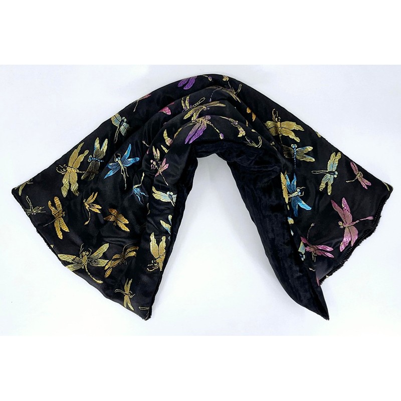 Tranquil Elegance Handmade Soothing Wrap Heating Pad - Dual Sided Satin Brocade & Velvet - Flax Seed Fill - Unscented - Dragonfly Nite - TSW-DF